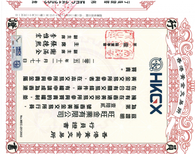 最高级别资质:获授香港黄金交易所AA类最高级行员(行员编号:162)。